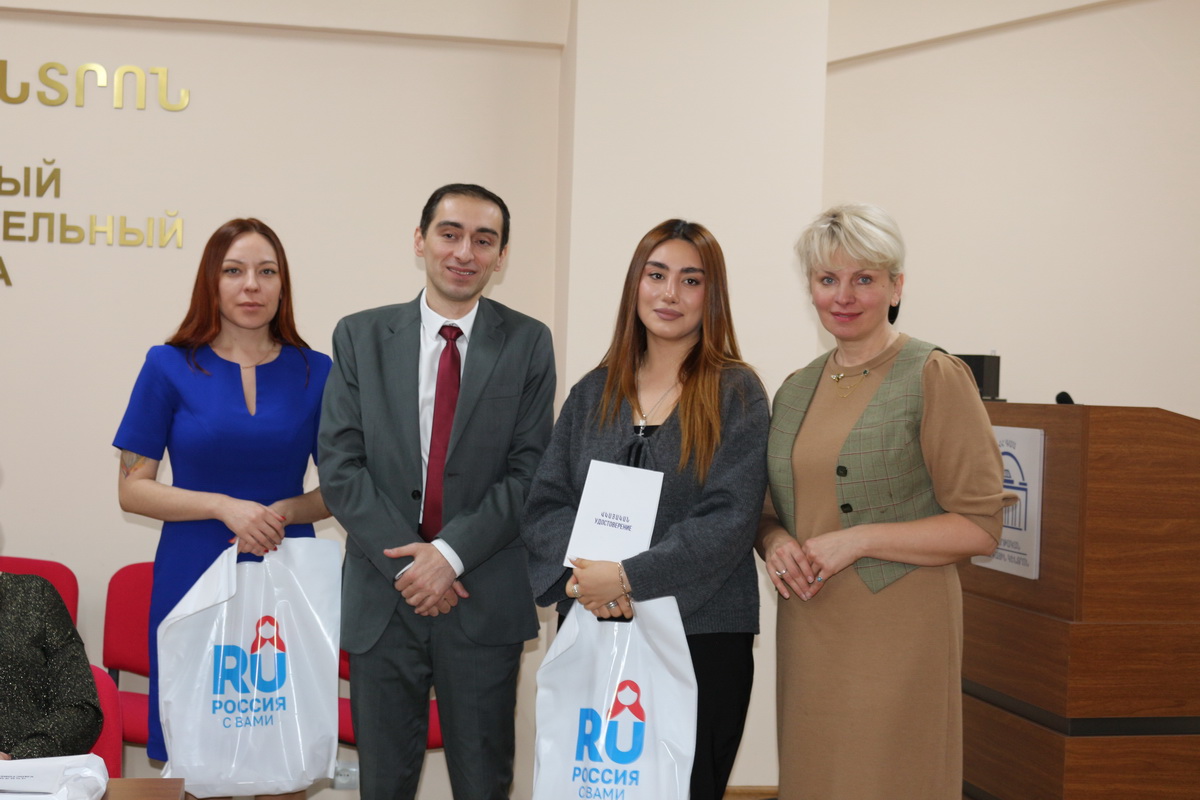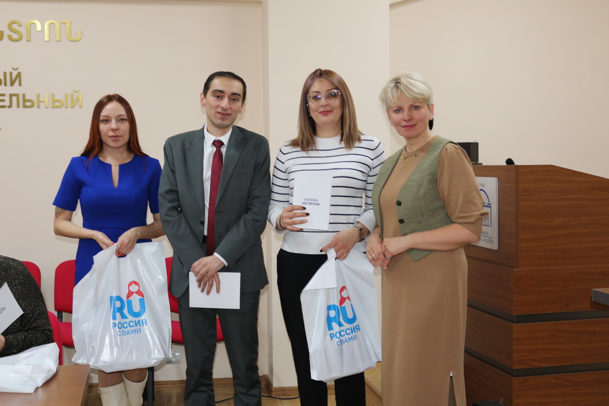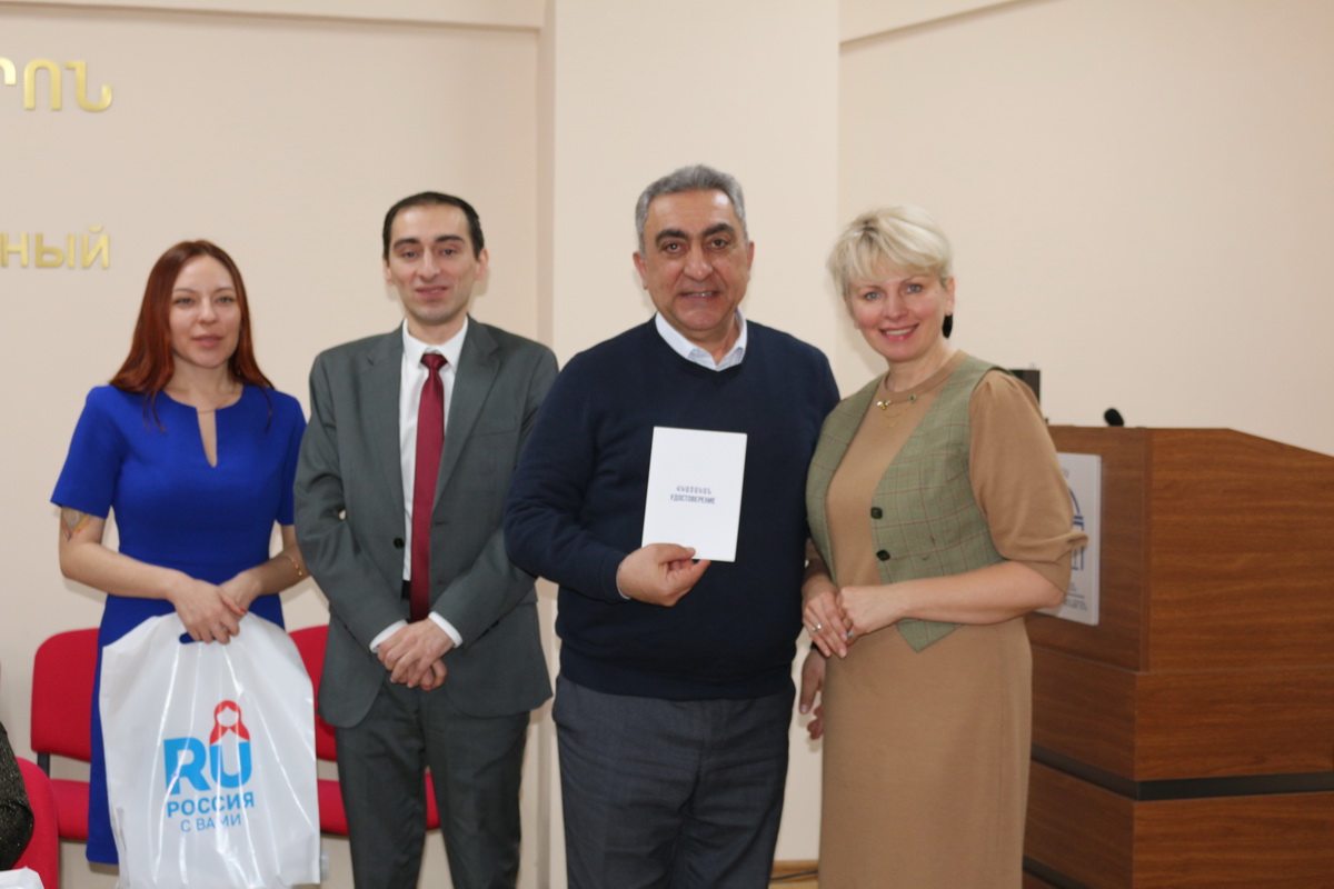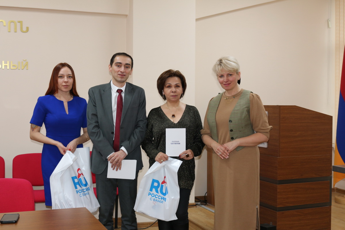 «Русский дом»-ի կողմից ողջույնի խոսքով հանդես եկավ «Россотрудничествo»-ի հայաստանյան ներկայացուցչության ղեկավարի տեղակալ Վիկտորյա Դերիպասկոն։ Ծրագրի հաջող իրականացման համար նա շնորհակալություն հայտնեց ԳԿՄԿ տնօրենին, ծրագրի դասախոսներին և ԿԳՄՍՆ-ին։