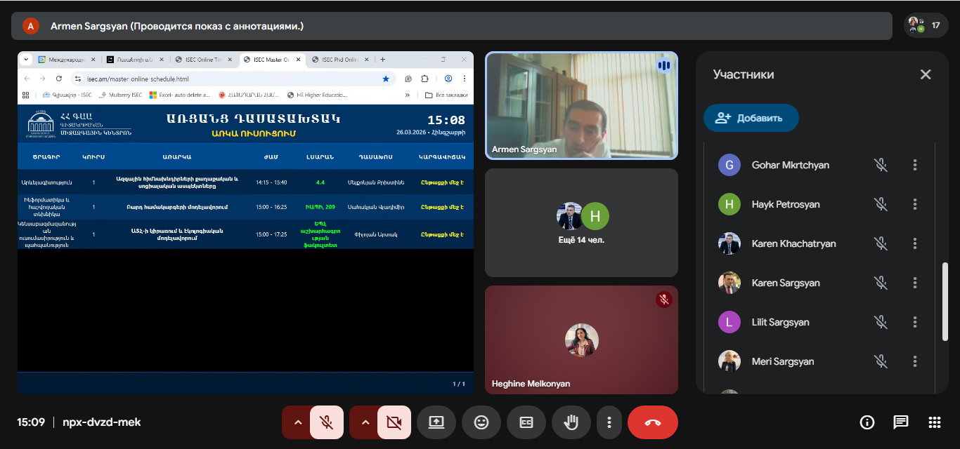 2026 թ․ մարտի 26-ին ՀՀ ԳԱԱ գիտակրթական միջազգային կենտրոնում (ԳԿՄԿ) կայացավ ամբիոնի վարիչների հերթական առցանց նիստը։ Այն վարեց դեկան Ատոմ Մխիթարյանը։ Նա անդրադարձ կատարեց Կենտրոնի ուսումնական գործընթացի որոշ կազմակերպական հարցերի, ինչպես նաև ՈւԽ և ՈւԳԸ միավորումների անձնակազմային ու կանոնադրական թարմացումներին։