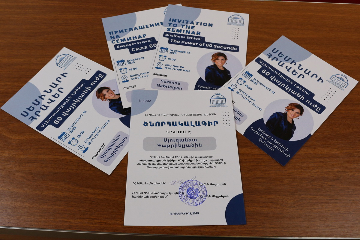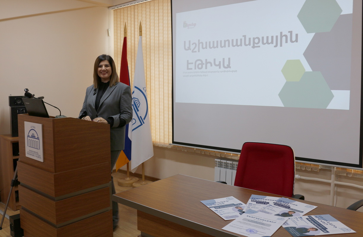 12 декабря 2025 года в Международном научно-образовательном центре НАН РА прошёл очередной семинар, посвящённый этике в контексте рабочей среды. Мероприятие было организовано инициативой отдела по связям с общественностью и карьере МНОЦ и было адресовано студентам, выпускникам и сотрудникам Центра. Цель семинара заключалась в развитии «мягких» профессиональных навыков среди студентов и выпускников Центра.