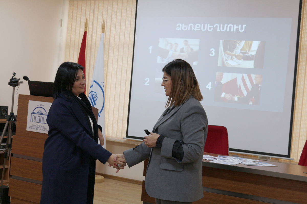 По завершении встречи Сюзанне Габриеляну от МНОЦ была вручена благодарственная грамота за проведение семинара, профессиональную готовность и эффективное сотрудничество с Центром.