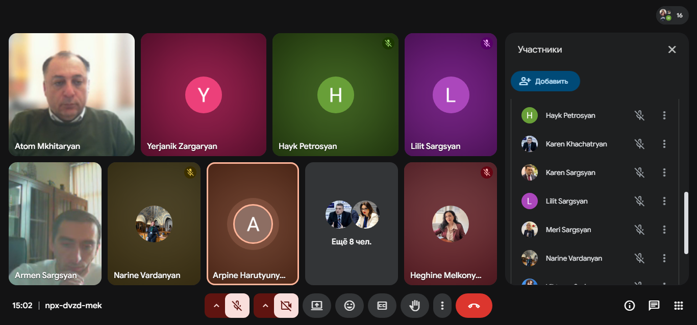В заседании также приняли участие директор МНОЦ Армен Саргсян и заместитель директора по учебным вопросам Ерджаник Заргарян, которые дали заведующим кафедрами ряд текущих указаний и ответили на поднятые ими вопросы.